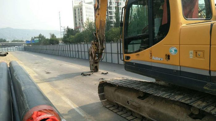 7月14日市政局下達昭烏達路哲里木路改造提升工程成吉思汗大街至北二環(huán)段供熱管網(wǎng)改遷入場通知,此段改遷項目分為南北兩部分。其中北段涉及管徑為DN400,溝長110米,新線位向東移位約9米,7月18日晚已完成原有管線的拆除工作,現(xiàn)溝槽已回填。新管線位已設(shè)立圍擋,正在進行開槽。南段涉及管徑為DN450,溝長170米,新線位向東移動10米,由于工期緊,采用先裝新管線再拆除舊管線的施工方案,20日上午已開始切割新管線的路面。