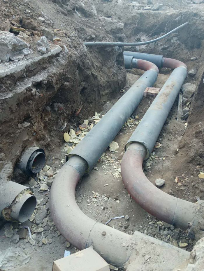 2018年9月5日上午,設計分院設計人員到麗景換熱站施工現場查看供熱一、二級管網改遷施工情況。由于御景花園小區(qū)地下車庫入口正好與我公司的原有供熱一、二級管網重合,所以需調整管道線位,該工程9月1日開始施工,供熱一級管網改遷約為115米,最大管徑DN250;供熱二級管網改遷約為210米,最大管徑DN150。